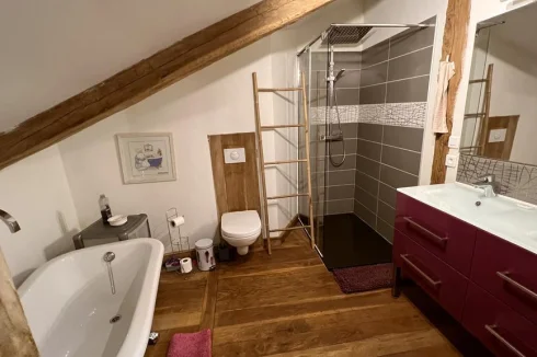 The property is currently divided into two communicating parts. One of them comprises two bedrooms and three shower rooms, ideal for a bed and breakfast or tourist accommodation project.
