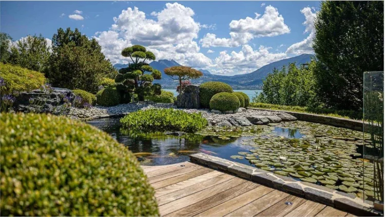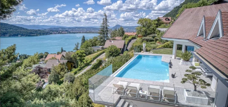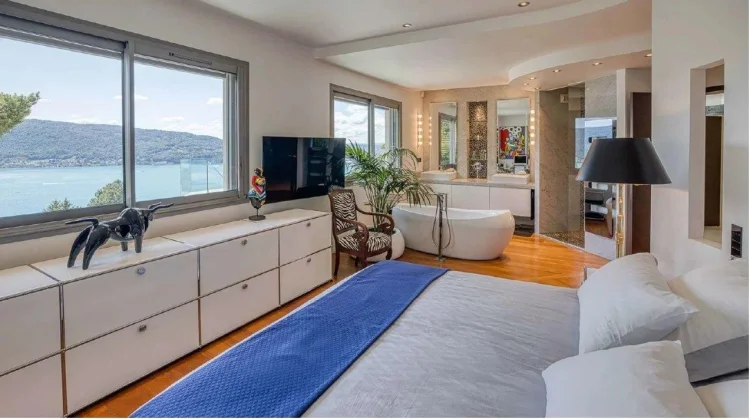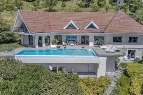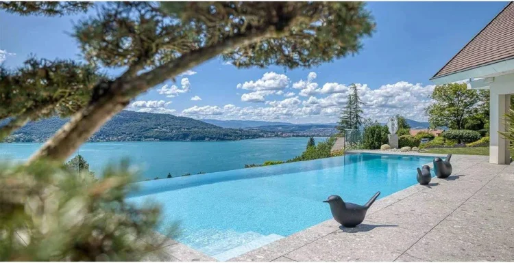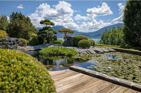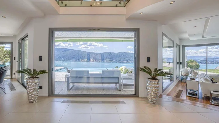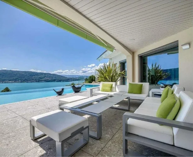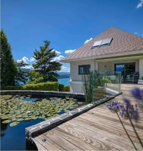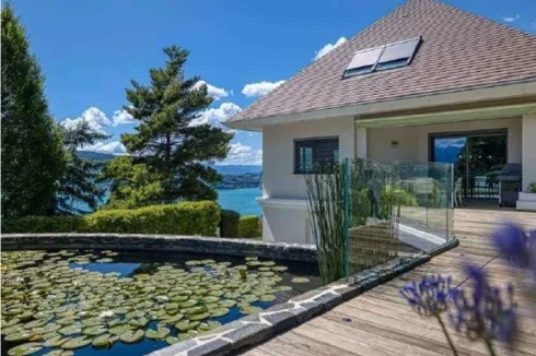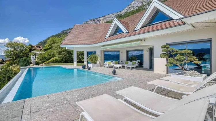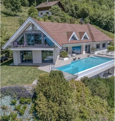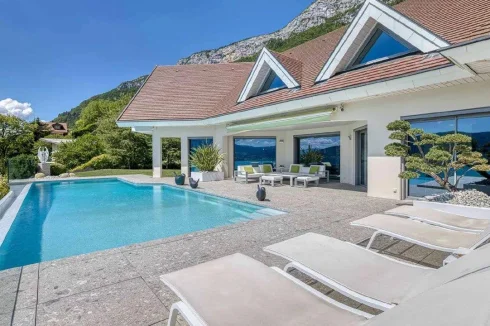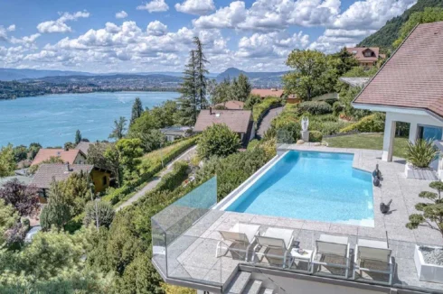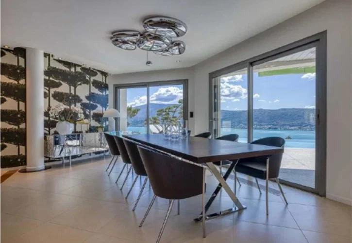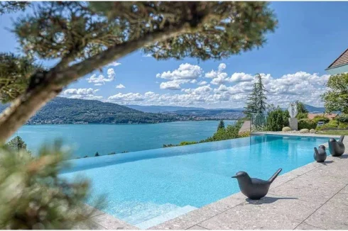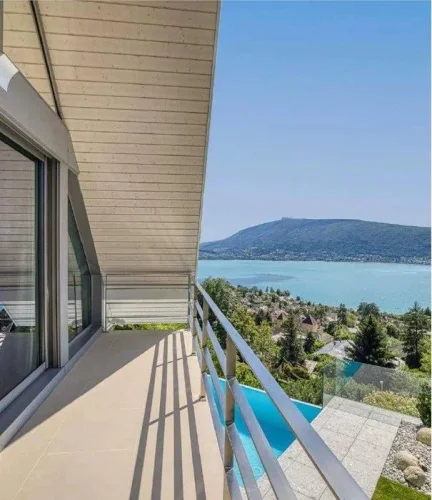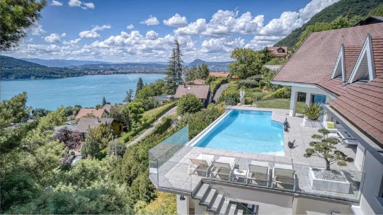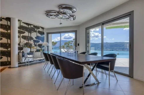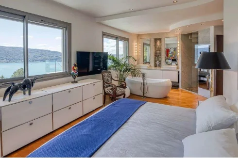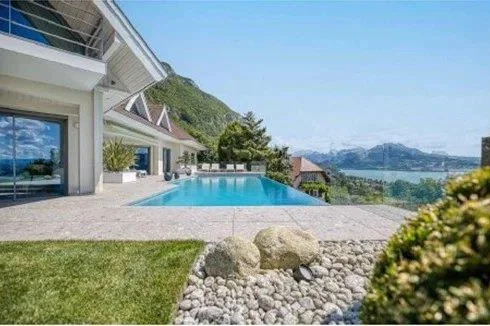 With a living area of 437 sqm on a plot of 4000 sqm, this property has been intelligently designed to allow you to enjoy the breathtaking view from every corner. The premium materials, remarkable finishes and architectural details have been carefully selected. The property features 5 beautifully appointed bedrooms, each offering stunning views of the lake and surrounding mountains. For greater comfort and privacy, 6 bathrooms are available. You can enjoy these spacious and elegantly designed spaces. The main living room, with its large bay windows, creates a warm and refined atmosphere, where you can relax while contemplating the breathtaking panoramas. Outdoor spaces include several terraces, a landscaped garden, a Japanese garden and a heated infinity pool, providing an ideal setting for relaxation. This property also offers additional amenities for your comfort, such as a fully equipped gym, a self-catering apartment on the garden level, home automation features and a weather station. Let yourself be won over by this exceptional residence, where luxury meets the natural beauty of Annecy.