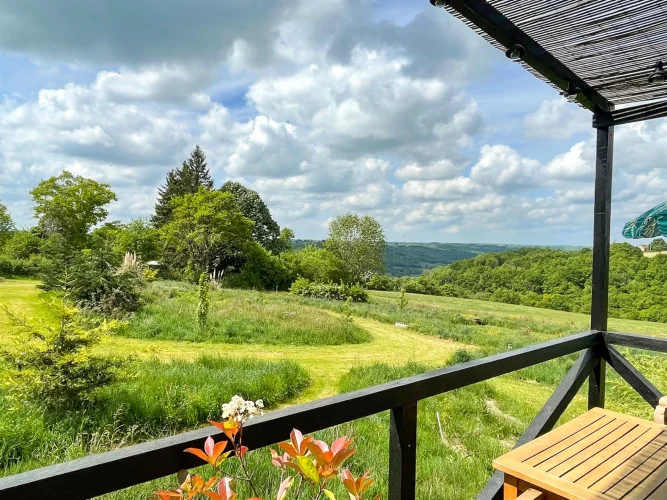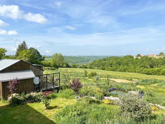 It offers a breathtaking view of the Combrailles and is five minutes from a village with all amenities: doctor's office, school, supermarket, bakery and butcher.
