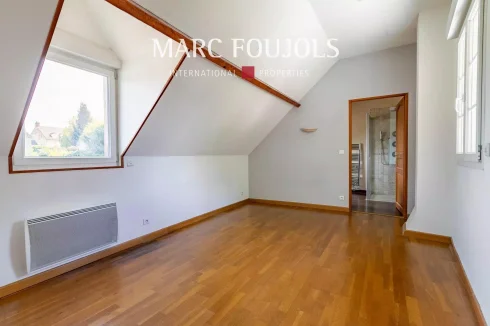 As soon as you enter, you will be seduced by its generous volumes and its luminosity. The ground floor offers a large living room, an open-plan kitchen opening onto a convivial dining room, as well as a discreetly furnished laundry room.