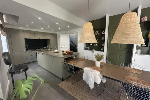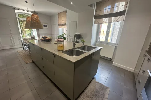 On the ground floor, a furnished and equipped kitchen (Leicht brand) offering direct access to the terrace, a living room, a dressing room and a toilet.