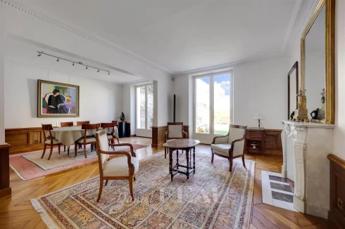 This renovated and very well-maintained period property is in one of Saint-Germain-en-Laye’s prettiest streets just a five-minute walk from the station and Place du Marché.