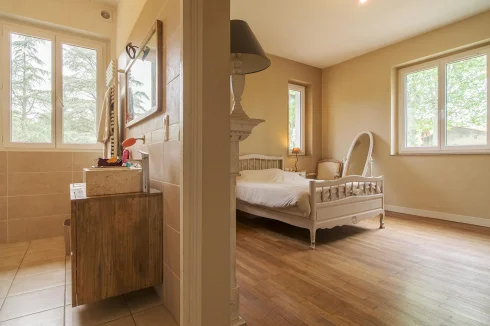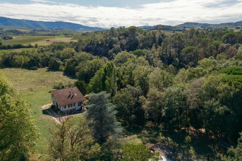 Only 20 minutes from Carcassonne and Limoux, on the outskirts of Saint-Hilaire, here is a property developing 2.8 hectares of woods and meadows, enhanced by a superb Basque-style architect's villa with its half-timbering and characteristic roof slopes. The villa has three levels: a large basement of about 90m² with garage, cellar and boiler room. On the ground floor, one is welcomed by a large entrance hall. To the left, the double living room of 41m² with dining area and lounge area with a wood stove, extended by a passageway leading to the 12m² kitchen, fitted, equipped, and with direct access to the garden. To the right of the entrance hall, there is the owner's suite of 28m² preceded by a hallway with wardrobe. Equipped with large fitted cupboards, it has a private bathroom with toilet. A hallway with wardrobe and toilet complete the main level which is distinguished by very beautiful volumes and a timeless character. A superb winding staircase leads to the first floor preceded by a large landing opening onto the hall which distributes the 3 bedrooms of 12m², 15m² and 16m², two of which benefit from access to the large sheltered balcony overlooking the perspective of the meadow. A shower room with toilet and a large attic complete the level which is distinguished by a magnificent solid parquet floor in blond wood perfectly maintained. The house is equipped with double glazed joinery, and a wood stove. Outside, past the villa, the vast meadow opens up from the access road, bordered on one side by a hedge of tall trees and on the other by the wood where a small stream runs. An exceptional property with a distinctive villa offered to the sweetness of life of the green Lauquet basin. A return to the roots on nearly three hectares. What if you went off the beaten track? For more information, contact us. 3385