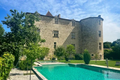 The Château de Fourcès sits at the entrance of one of the most beautiful villages of France, on the banks of the river Auzoue. Fourcès (meaning force in Gascon) is a unique and picturesque circular village renowned for its famous annual flower market on the last weekend of April, its monthly brocantes, restaurants and eclectic shops.