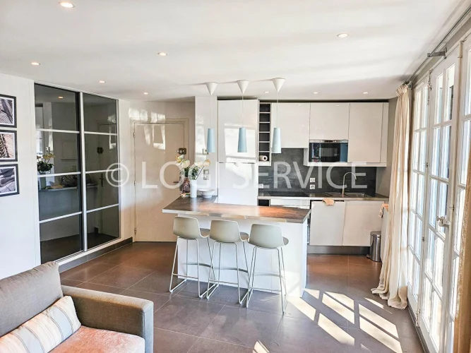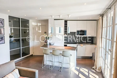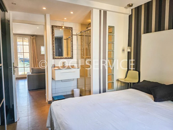 In a very residential area, a renovated apartment comprising an entrance hall with a living room and open kitchen, overlooking a large garden and the 12-meter mooring. A bedroom with its shower room and a separate toilet.