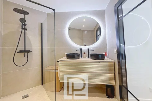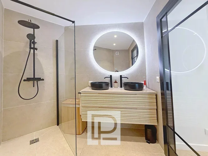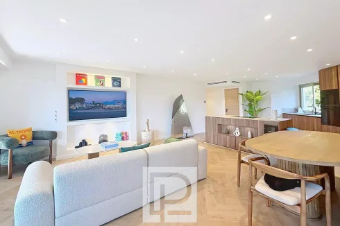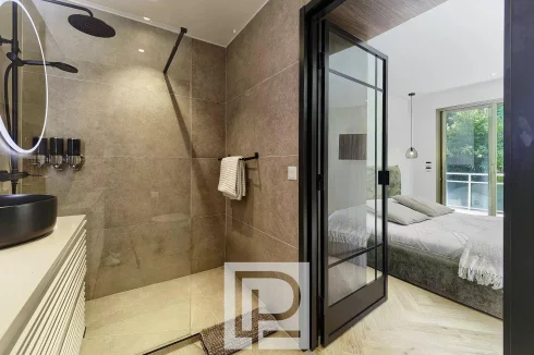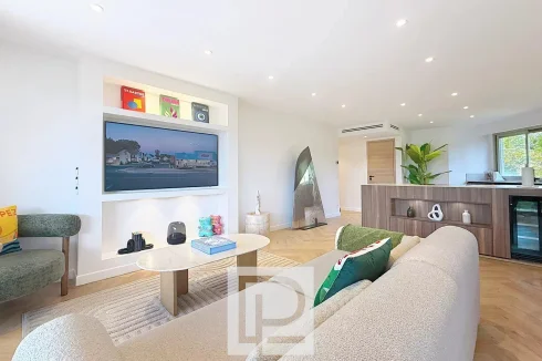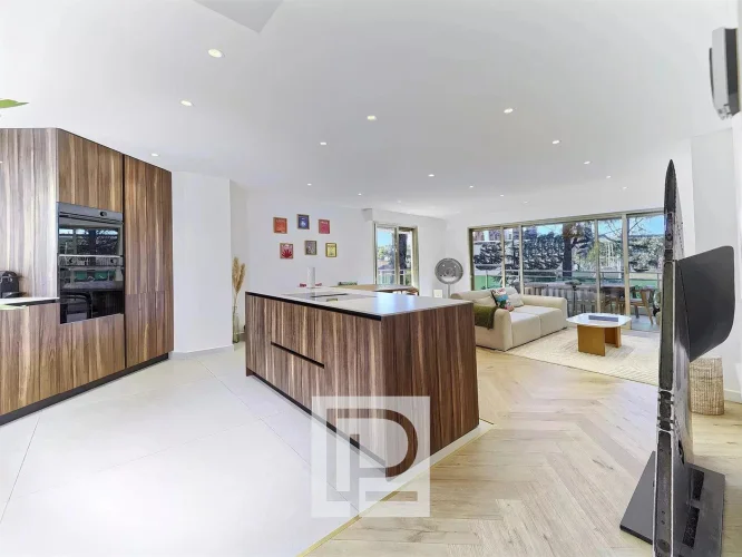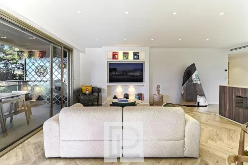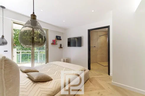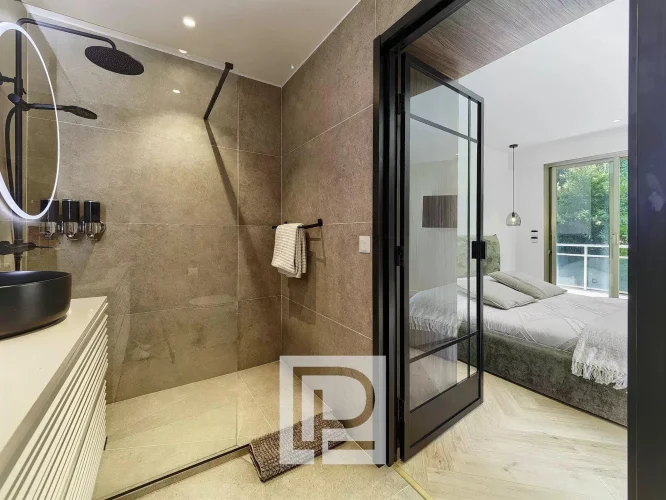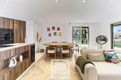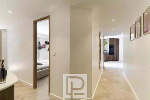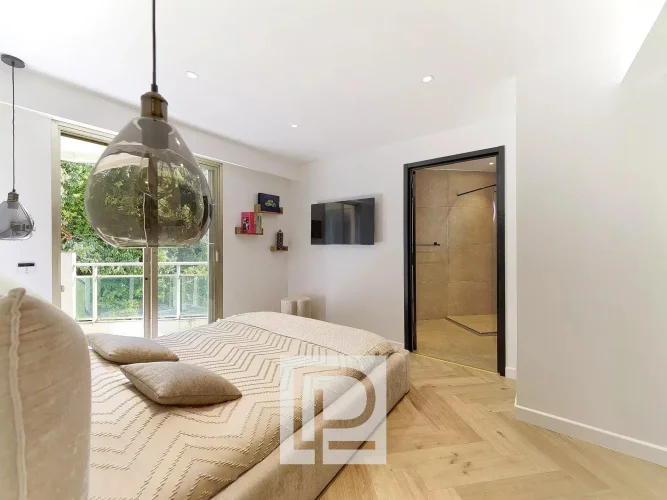 In an intimate residence surrounded by greenery, a renovated, ultra-luxurious 87m² three-room apartment located on the penultimate floor.