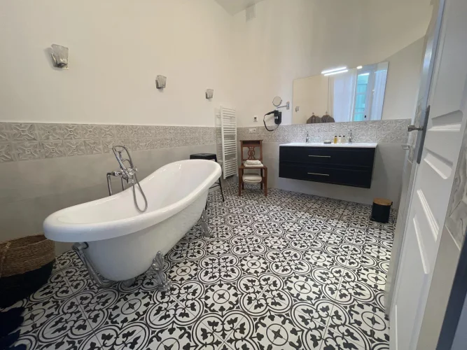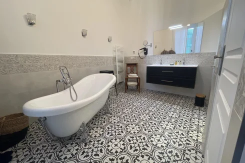 Plenty of space to entertain as there are 2 kitchens and 3 living rooms. The original elements have been well preserved including terracotta tiles, magnificent wooden doors, a grand sweeping staircase in wood, tile and wrought iron takes you for the reception hall up to the bedrooms.