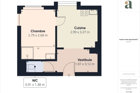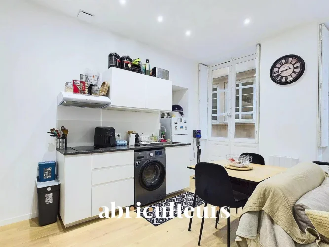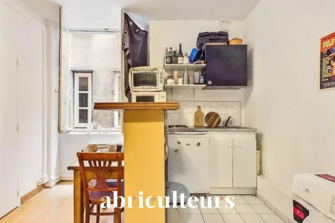 Apartment 3 - 27 m² (2ᵉ floor): sold rented (lease until January 2026). It comprises a living room with kitchenette equipped with a bar, a bedroom with washbasin and shower area, and separate toilet. Renovation work will reveal its full potential.