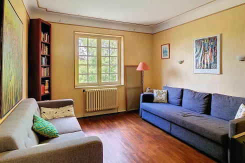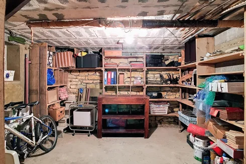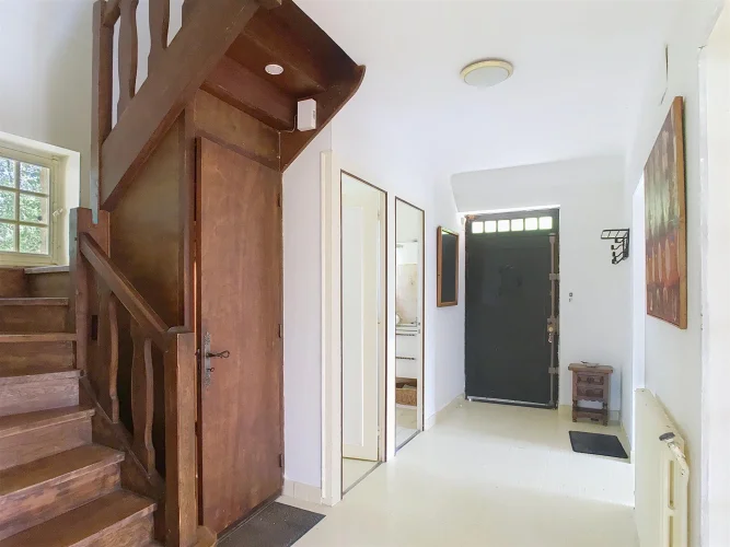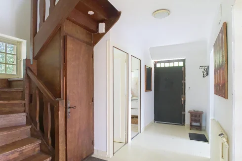 The garden level comprises a large space with several storage rooms and a parking space for one car. This area is ideal for setting up a laundry room, utility room, or storage for garden equipment, and it also has a water connection.