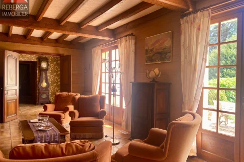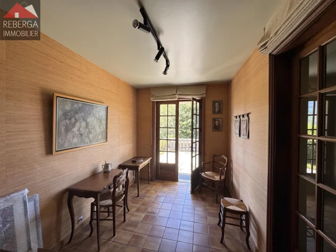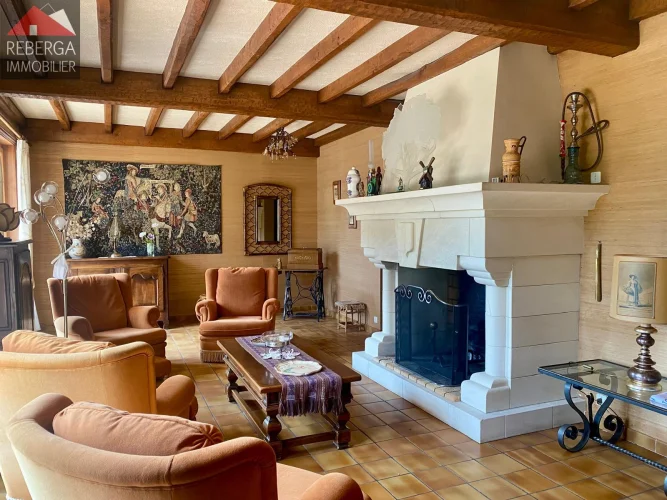 Exclusive On the heights of the Pont de l'Arn, single-story villa of 224 m2 Entrance hall, very bright south-facing living room with fireplaces, separate kitchen, 3 bedrooms, office, double bathroom Beautiful reception room with high ceilings (mezzanine, bathroom) Full basement (garage for several cars). Heating: recent and very efficient heat pump (hot/cold) (Dpe in C) Possibility of purchasing two adjoining building plots (1752 m2) The size of this house and its location make it a rare product.