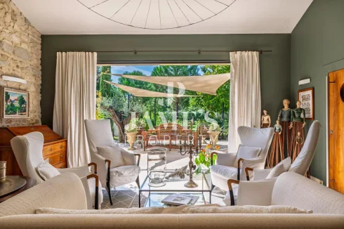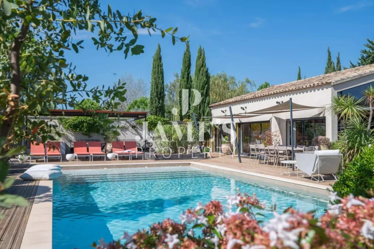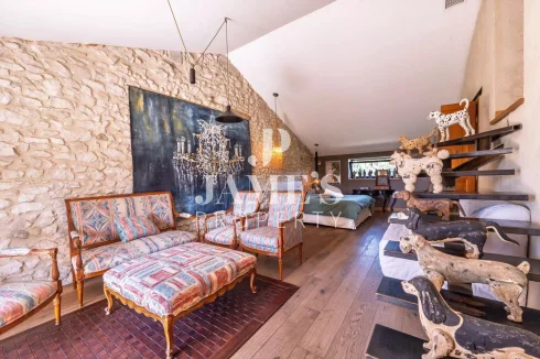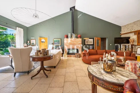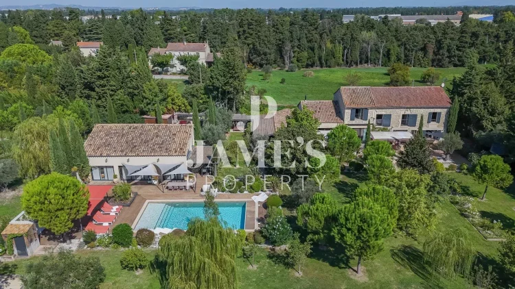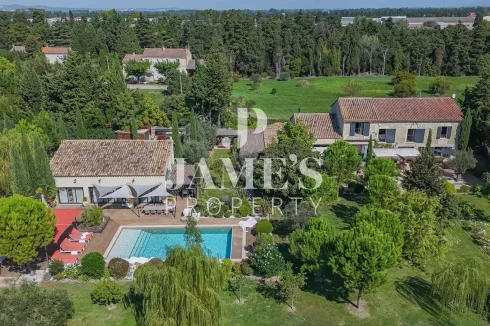 Jame’S Property presents, in the peaceful countryside of Châteaurenard, this magnificent stone farmhouse of 350 m² with a fully fitted 100 m² pool house, set on more than one hectare of landscaped grounds planted with olive trees.