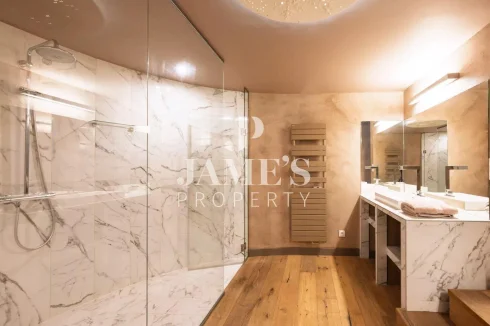 Upstairs, two additional bedrooms share a bathroom and toilet. A superb master suite completes this level, including a study, a beautiful bedroom, and a refined shower room with double basins and double walk-in shower.