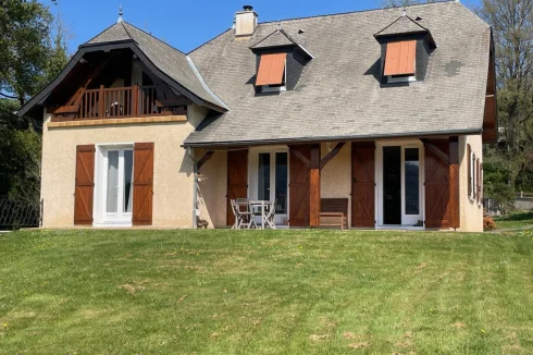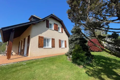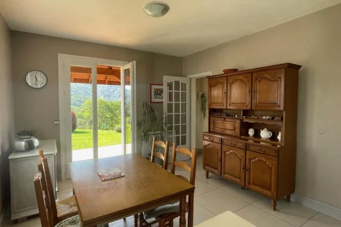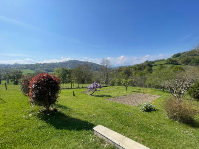 In complete calm, on fenced land of 2463 m² with views of the mountains, come and discover this beautiful Béarnaise T5 in very good structural condition offering 120 m² of living space with all comforts. You will find on the ground floor an entrance, a beautiful and large living room of 54 m² with fireplace, a master suite and a toilet then upstairs, three other bedrooms, an office, a bathroom and a toilet. A large complete basement of 85 m² completes the property.
