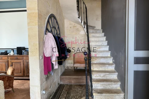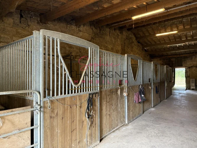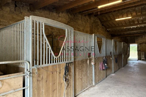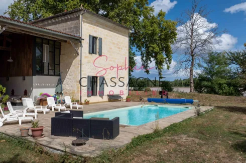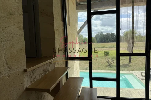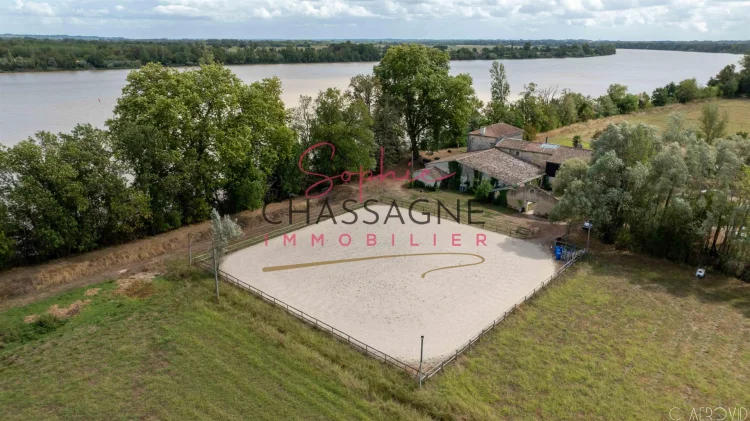 15 minutes from Libourne, A35 from Bordeaux, on the banks of the Dordogne? Equestrian property with two houses, one of which needs renovation, and facilities on more than 10 hectares. Main stone house This characterful residence is organized around a patio opening onto a terrace and its swimming pool . Ground floor : a bedroom with fireplace and shower room/WC, a laundry room with Wc, a fitted and equipped kitchen with dining area and fireplace, an entrance/hallway, a warm living room. Upstairs : a landing leading to a bedroom with shower room, a bedroom with bathroom + shower, a separate toilet, and a bedroom with private shower room and dressing room. 9.5 x 4.5 m chlorine swimming pool with its technical room. Heating by heat pump ? Sanitation by micro-station . Second house (to renovate) Ground floor : living room with fireplace, kitchen Upstairs : 3 bedrooms, dressing room, hallway, shower room Equestrian facilities Stable with 4 boxes equipped with automatic waterers and a seed store Hay shed 40 x 40 quarry , fibered, drained and lit Workshop with toilet, shower and sink 3 horse shelters Outdoor shower for horses