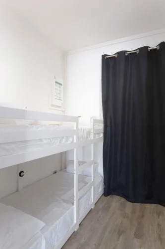It comprises a bright living room with a fully equipped open kitchen (fridge, freezer, microwave, dishwasher, hob), a 160 cm sofa bed (Rapido model), a large closet, ample storage, a cabin area with bunk beds, a modern shower room (120x90), and separate toilets. Continuous parquet flooring adds harmony and elegance throughout the apartment.