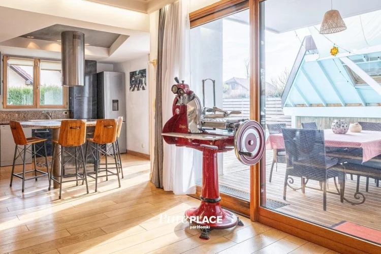 Located in a quiet and sought-after residential area of Meythet, only a few minutes from the center of Annecy, this architect's villa of 310 m² of living space offers an exceptional living environment. Perfectly suited to a large family, a housing project with rental yield, or an independent activity, this property will seduce you with its volumes, its top-of-the-range services and its modularity.