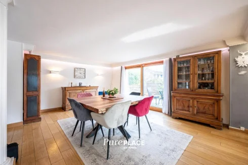 Direct access to a 730 m² garden with trees, with a 100 m² wooden terrace and a perfectly integrated swimming pool for moments of relaxation in complete privacy.