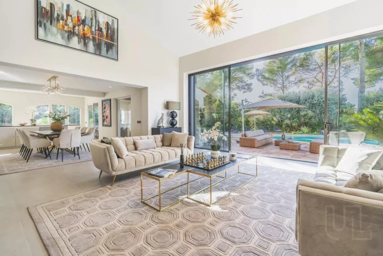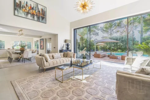 Conveniently located just fifteen minutes from the golden beaches of La Croisette, this luxurious villa in Mougins offers the perfect blend of tranquillity and accessibility. Impeccably renovated, the property spans an impressive 430 sqm and is set within one of the most sought-after and prestigious neighbourhoods of the area. Combining high-end contemporary finishes with refined design, it provides an elegant living environment that perfectly balances comfort and sophistication.