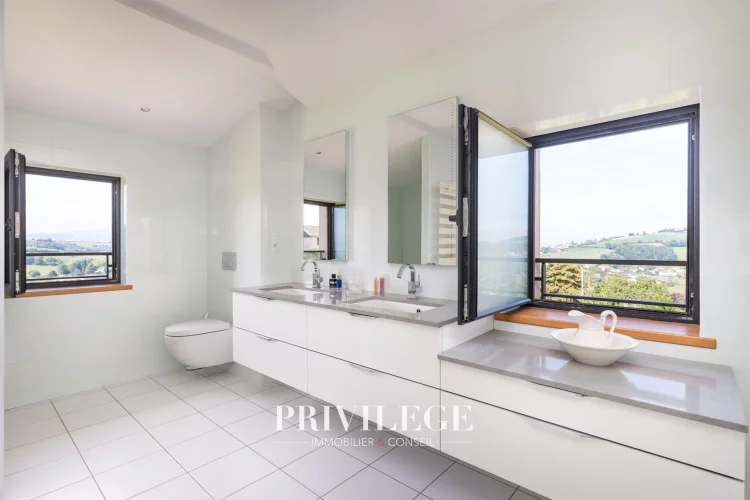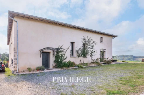 Situated on a 7,000 m2 plot, the property offers breathtaking panoramic views of the surrounding countryside and the Monts du Lyonnais. A true haven of peace, designed to combine comfort, aesthetics, and quality of life.