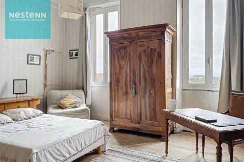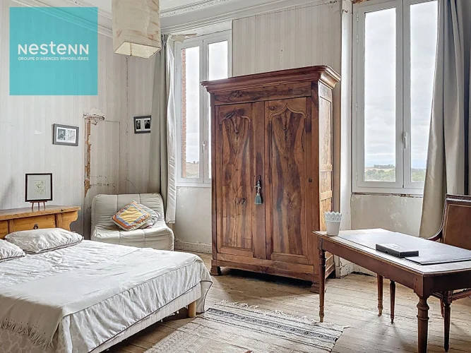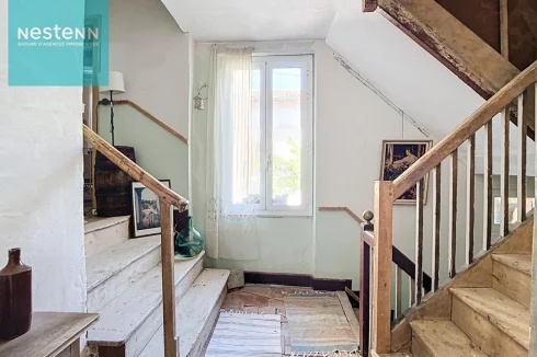 A period solid wood staircase to finish renovating, leads you to the 1st floor of the house, where there are 3 beautiful bedrooms, a shower room, and a small room to be fitted out (dressing room, office or shower room according to your desires).