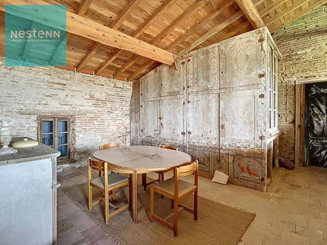 Nestenn is pleased to offer you this house of 190m² of living space, 4 bedrooms, with cellar, garage in the basement and terrace of 158m², with courtyard and garden of 158m², to finish renovating, 10 minutes from Nailloux.