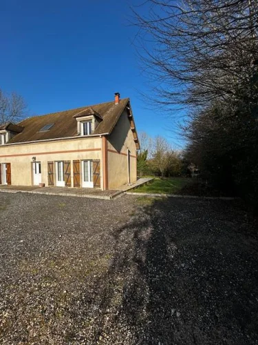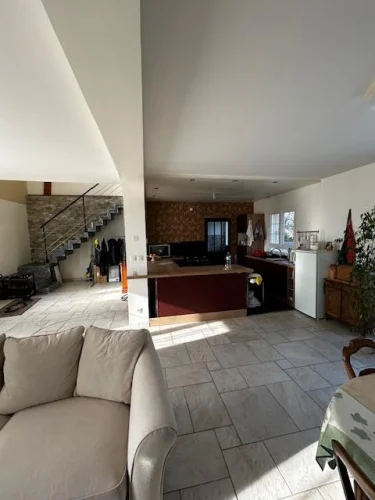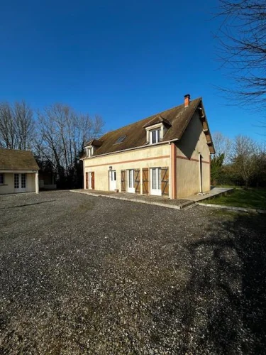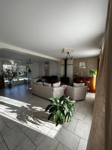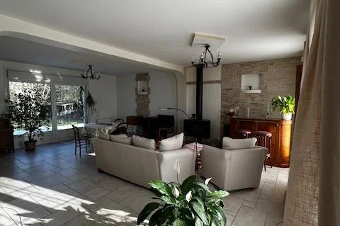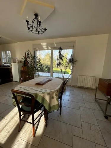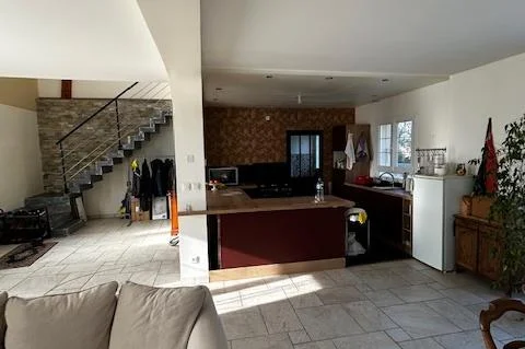 Located in the countryside, a 2010 pavilion offering a large entrance to a bright living room, open fitted kitchen, laundry room, 4 bedrooms including one on the ground floor. 2400M2 of flat, wooded land. Garage and workshop.