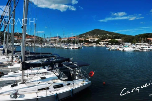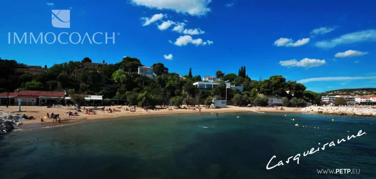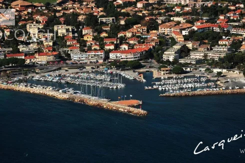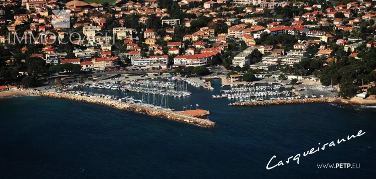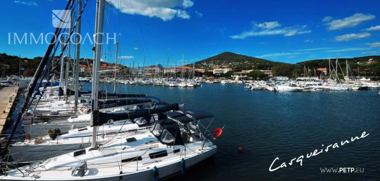 In a secure residence, on the Port of Carqueiranne and 100m from the sea, discover this rare and unique roof terrace apartment of 74m² of living space + 1 terrace of 80m², 1 private parking space and 1 cellar of 7m².