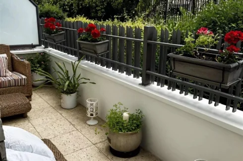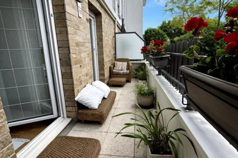 Located on the garden level, this apartment combines modern comfort with generous outdoor space totaling nearly 34 m².