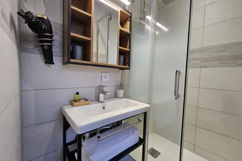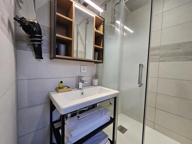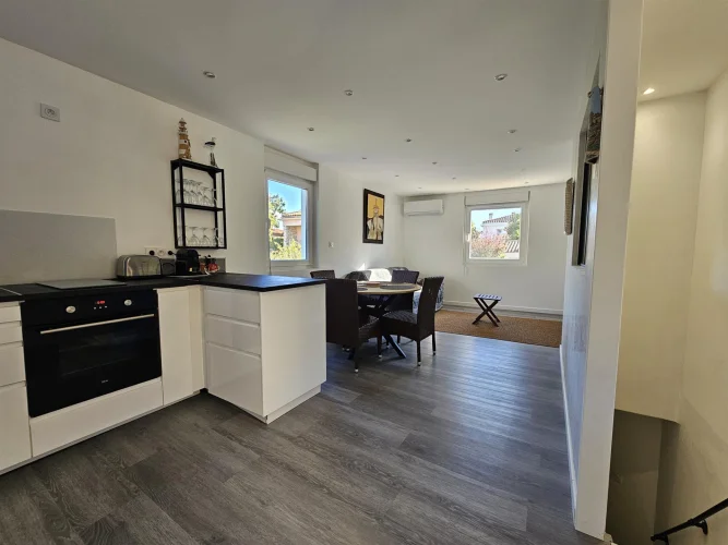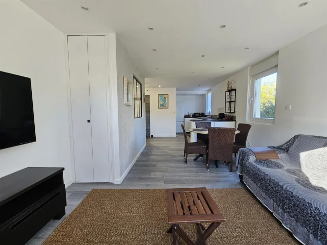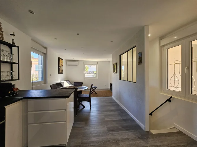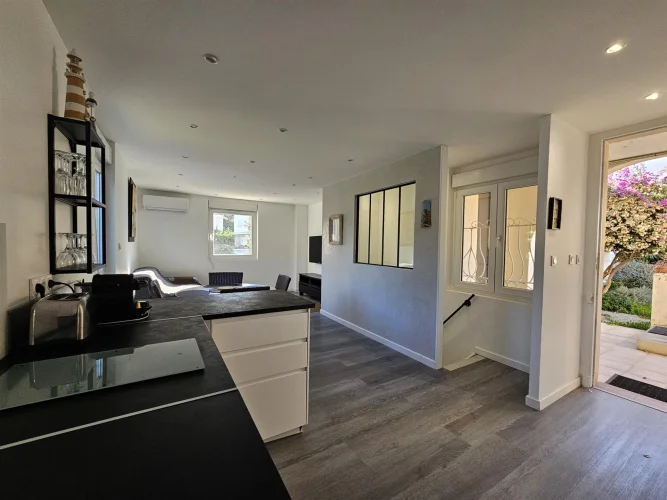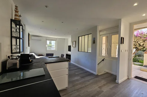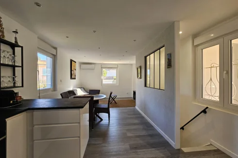 This inverted duplex of approximately 44 m2, completely renovated at the end of 2024, offers a practical and pleasant layout. The living room, with its modern kitchen, shower room and toilet, is located on the ground floor, while the bedroom is on the garden level, in absolute calm.