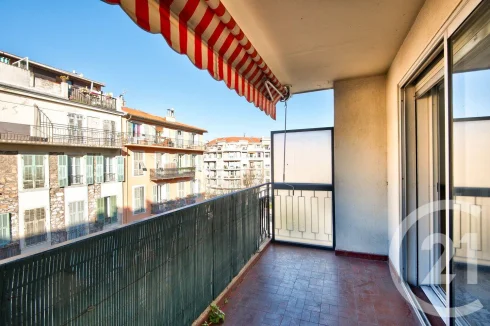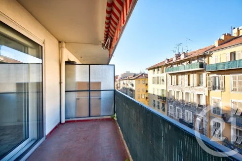 Nice - Le Port : Located on the top floor of a luxury residence, close to all amenities and just a few minutes' walk from the Port of Nice and the tramway. Pleasant, bright 2 bedroom apartment of 83 sqm in need of modernization, east-west facing, opening onto a terrace and balcony. It comprises an entrance hall with cupboard, living room, kitchen, two large bedrooms (one with cupboard), bathroom and separate toilet. A cellar completes the ensemble, with the possibility of acquiring covered basement parking in addition to the price.