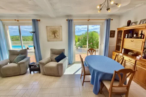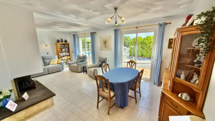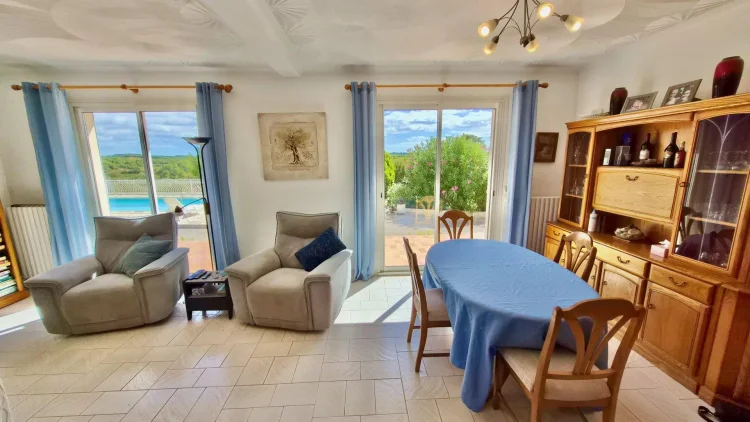Set on the edge of a sought-after village only a few kilometres from the vibrant market town of Pézenas, this detached 120m² home combines modern comfort with a peaceful countryside setting. Perfect as a full-time residence or holiday escape, it offers generous living space, a large garden, and sweeping views across the surrounding landscape.