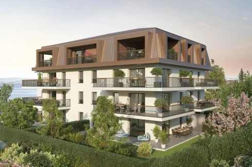 Apartment with 3 bedrooms on the second floor. This intimate project at the entrance to the city of Evian benefits from a strategic location in the immediate vicinity of the station, but also to get to the pier or simply to stroll by the lake or in the historic center of this city steeped in history and heritage. The new project is a beautiful Evian bourgeois house, on the edge of the lake, composed of only 12 apartments. You will find generous spaces, large openings to the outside, materials selected for a unique living environment.