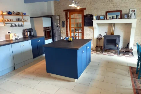 ✨ A fully fitted kitchen with dining area and a fireplace with high-performance insert