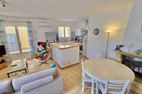 Located just outside Pézenas in a vibrant village, this spacious 72 m² first-floor apartment offers a rare combination of modern convenience and Mediterranean charm.