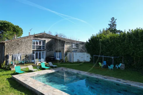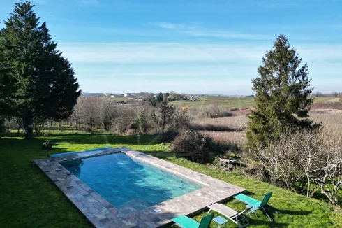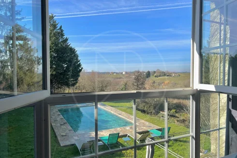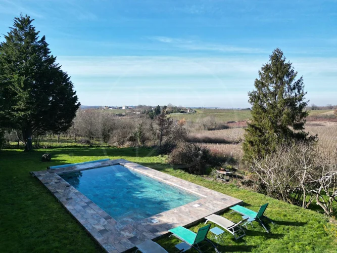 This beautiful property is located in a calm area with wonderful views of the surrounding countryside. The property offers multiple habitations creating the opportunity for rental income or a large family home with room for guests! The owner currently uses the two bedroom house as the main residence which includes a good size kitchen, living room, a ground floor bedroom and bathroom with a mezzanine space and second bedroom on the first floor. The larger four bedroom property is well adapted for use as a gite with a large living space and dining room that leads on to a wonderful library. On the ground floor you will also find the kitchen, two bedrooms and a shower room. On the first floor are two further bedrooms and a bathroom. The studio apartment can be used as part of this house or can be closed off with independent access from the exterior. The property is located in a calm area with far reaching views. The property also includes an attached barn and there are two gates to create separate access for each residence. The exceptional swimming pool area and surrounding gardens overlook the rolling hills of vineyards and neighbouring château.