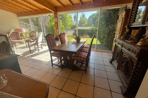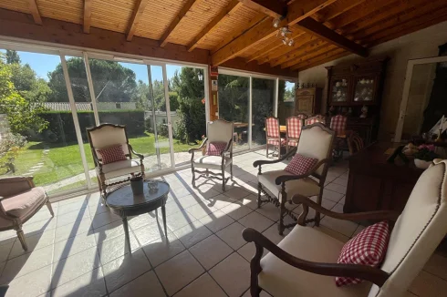 There is a large, well-equipped kitchen with ample space for a dining table. Whilst the bright and spacious verandah overlooks the south-facing garden, flooding the home with natural light and creating the perfect spot for relaxing or entertaining while enjoying views across the well-planted gardens.
