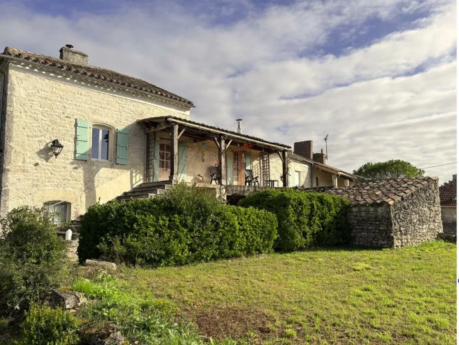 Located in a small typical Quercy village, 10 minutes from shops, is this beautiful and authentic property comprising a restored character house, a barn, and a house to be restored.