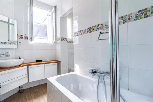 Particularly bright and benefiting from an excellent floor plan, it includes a spacious east-facing living/reception room opening onto a wide balcony enjoying an open view over the rooftops, a separate kitchen, a master bedroom overlooking a courtyard, a bathroom and wc, a guest wc, a study or dressing room, two bedrooms overlooking a courtyard, and a shower room.