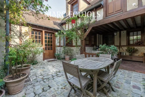 The Marc Foujols Agency is pleased to present this sumptuous building located in the heart of the historic center of Senlis. In a quiet street and in the immediate vicinity of all the shops, it is hidden behind a stone wall that preserves all its privacy. The house offers on the ground floor, an entrance, a double bright living room, a fitted kitchen, a bathroom and a cloakroom. Upstairs, you will discover four bedrooms, a bathroom, a dressing area and a large additional room now converted into a living room and office, which can easily become a bedroom/suite or adapt to your needs. A pretty inner courtyard allows you to enjoy moments of relaxation outside. A cellar completes the set as well as two private parking spaces in the immediate vicinity of the building. The roof is new