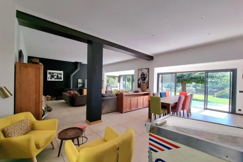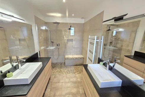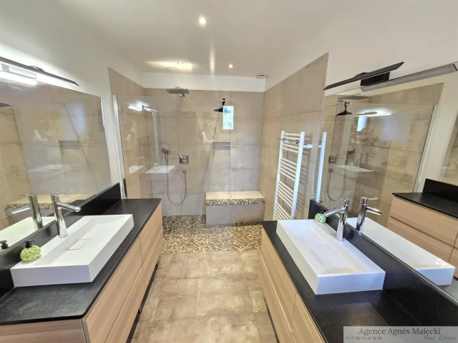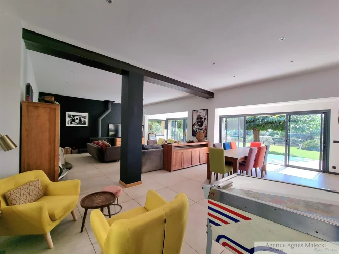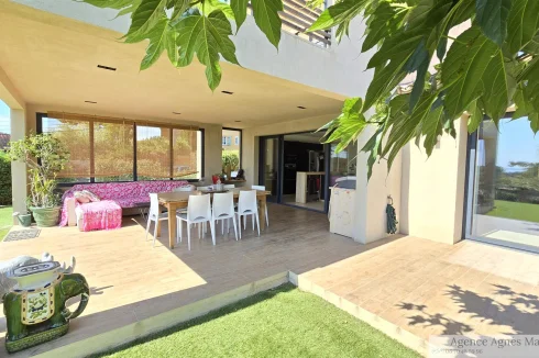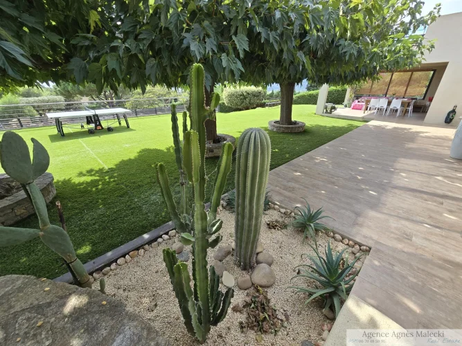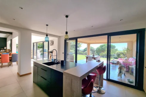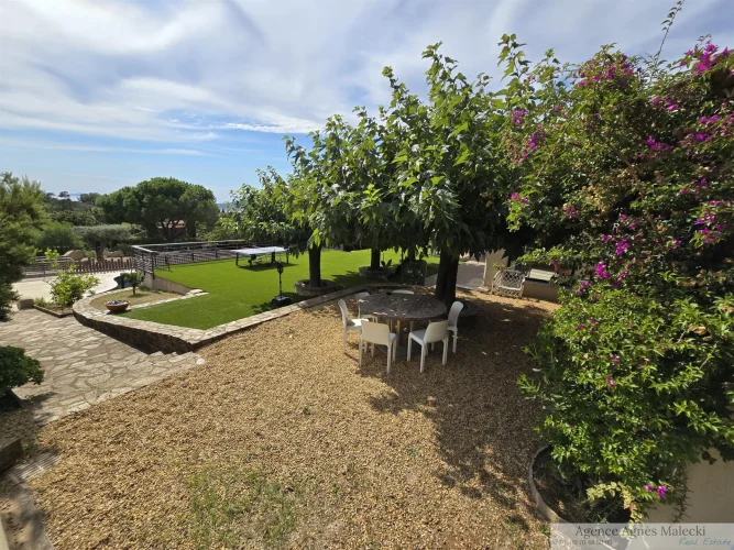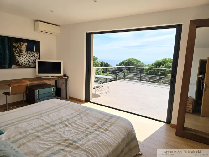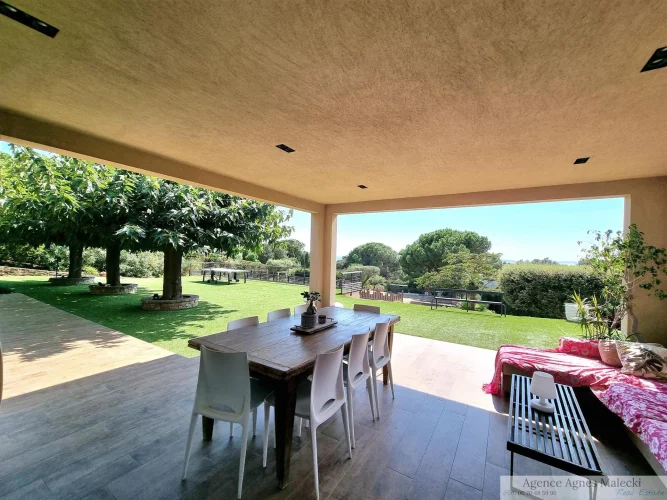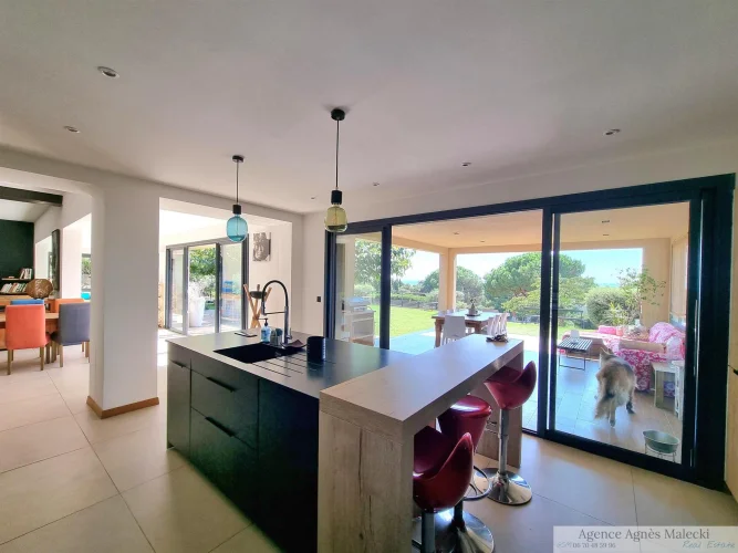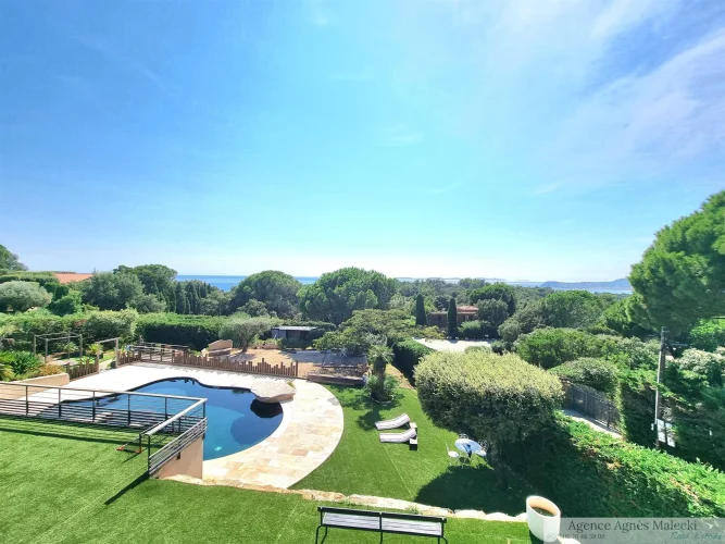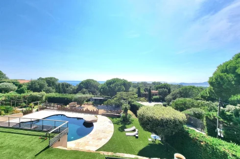 Close to the beaches of Gigaro - not far from the Village. Sublime High-End Property from 2018 with its Sea View built on a fully landscaped plot of approximately 2500m2 and a Beautiful Swimming Pool in the middle of the plot. It invites you to a large living room, open kitchen fully fitted and equipped with access to a covered terrace, patio - Bedroom area 4 bedrooms including a master upstairs with sea view and very beautiful South terrace. Garage and annexes. Flat land offering very beautiful living spaces. Very Beautiful Manufacture Without Any Work.