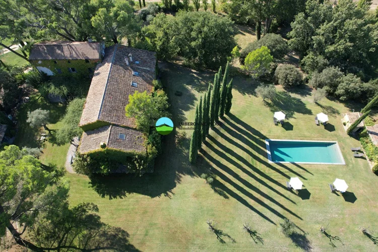 Ideally located, not far from the main roads, airports and Tgv station. This superb property enjoys a dream location, in complete calm with a breathtaking view of Mont Ventoux and the Dentelles de Montmirail. Avignon and Isle-sur-la-Sorgue are 20 minutes away, Marseille or Aix en Provence 1 hour away. The imposing building has been restored with style and taste... Well-Chosen quality materials. It also offers a very comfortable living space of around 800 m². Its 7 air-conditioned rooms with private bathrooms guarantee the comfort and privacy of your guests. Three living rooms, 2 of which with fireplace, dining room, kitchen and galley kitchen, laundry rooms, everything is designed to entertain in beautiful conditions... A guest house completes the whole. The swimming pool area benefits from exceptional views, relaxation and contemplation on the program... To discover all the qualities of this rare property, simply call us to organize a visit. Luberon Ventoux Immobilier in Caromb