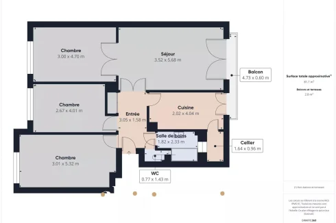 Just a stone's throw from transport, schools and shops, discover this beautiful 82 m² walk-through apartment on the 3ᵉ and top floor of a quiet residence with janitor.