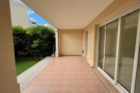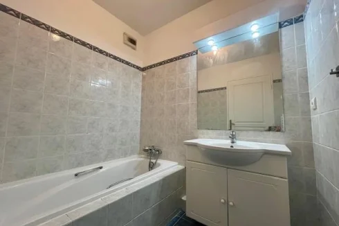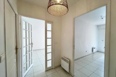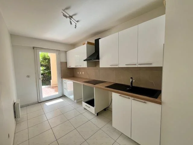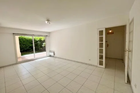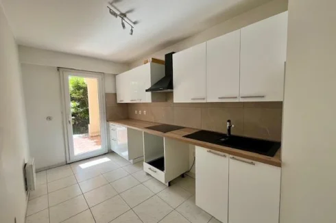 A beautiful 3 room apartment of 63 m2 located on the ground floor facing south. The apartment consists of an entrance, a large living room of 20 M2, a separate fitted kitchen (with the possibility of opening onto the living room to create an American kitchen) all opening onto an exterior of 40M2 with covered terrace and garden.