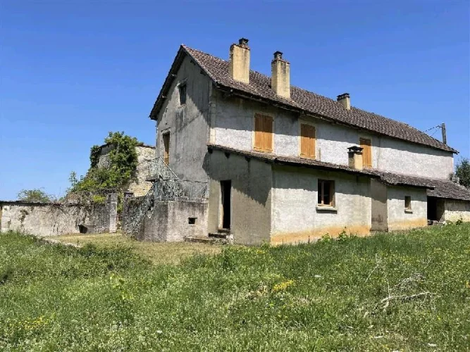 25 minutes from Sarlat in the Lot, close to a village with shops, school and college, on a plot of 11,000m² this 130m² house is to be finished restoring, some structural work having been undertaken.