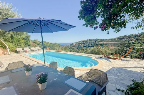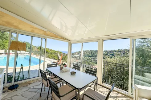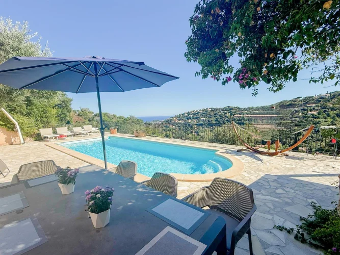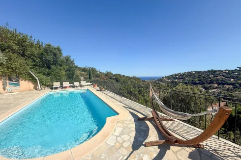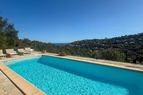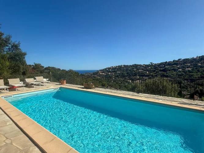 Cavalaire-Sur-Mer Charming Provençal villa located on the heights of Cavalaire, offering beautiful sea views, close to nature. It comprises, on the main level: A living room, dining room, and fully equipped open kitchen, all opening onto terraces with sea views A terrace enclosed by bay windows with a lounge/dining area, very pleasant in mid-season. A beautiful master suite with bathtub and toilet. A second bedroom with shower room and toilet. A laundry room. Upstairs: two bedrooms and one shower room with toilet. Swimming pool Utility and storage room Garage This charming villa has been completely renovated recently and offers a high level of comfort, beautiful sea views and absolute peace and quiet. The façade is due to be renovated soon.