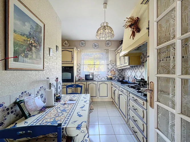 It consists of a living/dining room giving access to a comfortable terrace of 15 m2 offering an exceptional view, an independent kitchen with small pantry, a separate sleeping area with cupboards, a shower room, a separate toilet and two bedrooms with cupboards.
