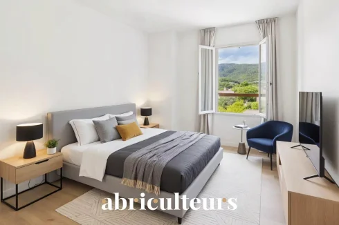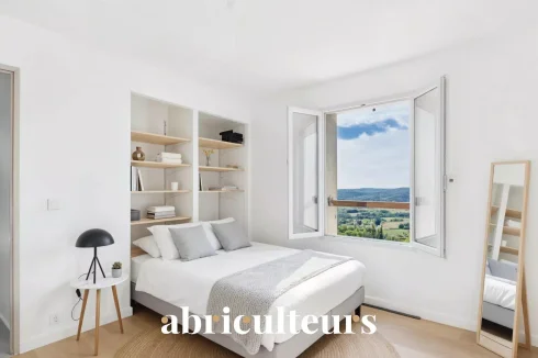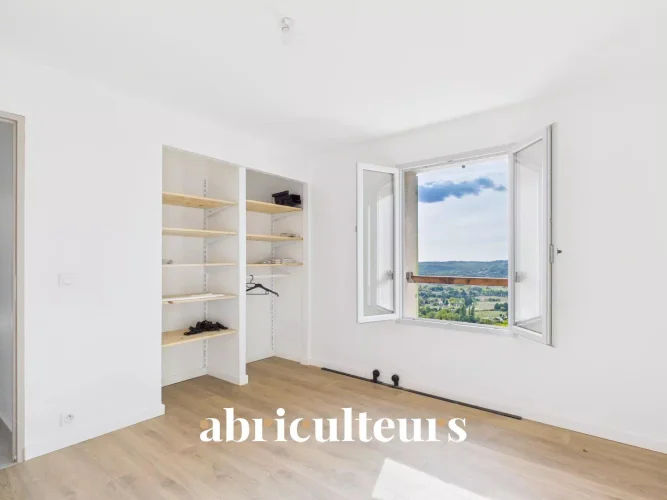All this gives access to a lovely 14 m² west-facing terrace offering unobstructed views over the valley and hills, up to 30 km on the horizon.