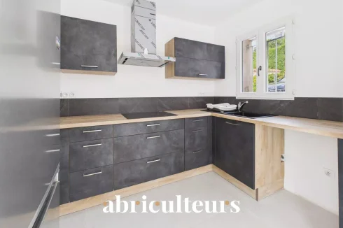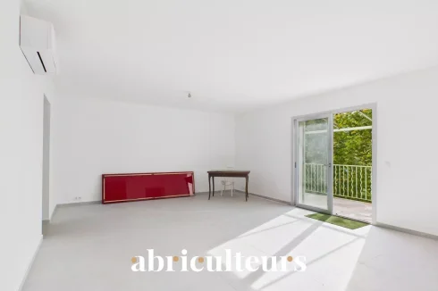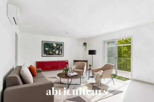The living space, approximately 40 m², benefits from a triple opening and a beautiful luminosity. It opens onto a new, fully-equipped open-plan kitchen (hob, oven, hood, fridge).