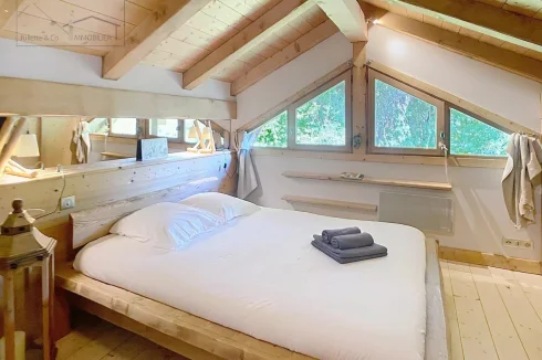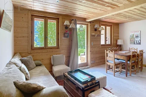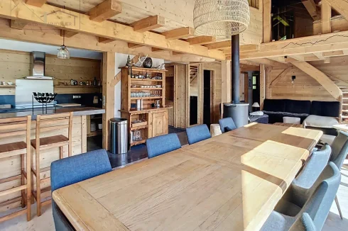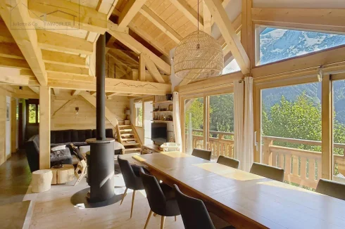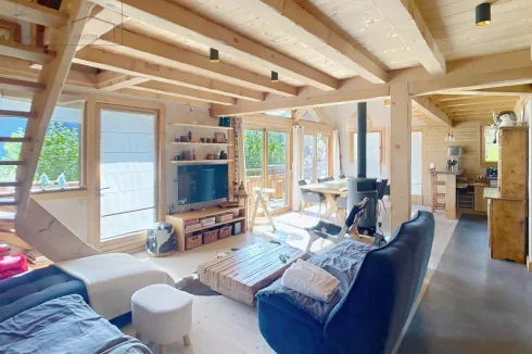 Featuring a welcoming fireplace and large bay windows, this chalet offers a bright and welcoming living environment. Modern installations such as photovoltaic panels guarantee an environmentally-friendly, connected lifestyle.