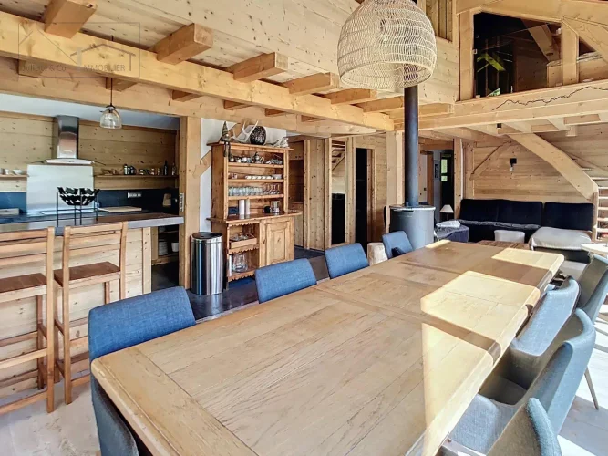 Discover this magnificent 217 m² chalet in Les Houches, offering breathtaking views of the surrounding mountains. With its six spacious rooms, this property is ideal for a family or for entertaining friends. Tastefully furnished, the chalet is sold fully furnished, combining modern comfort with Alpine authenticity.